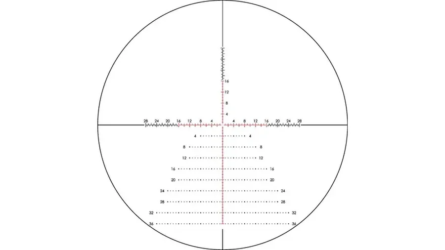 - Odak Düzlemi ve Retikül: FFP (Birinci Odak Düzlemi) konumlandırmalı, 10 kademeli kırmızı aydınlatma destekli EBR-7D (MRAD) retikül.
